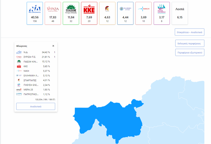 Αναλυτικά το τελικό αποτέλεσμα (σε 199 από 199 εκλογικά τμήματα):